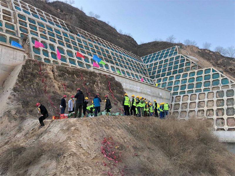 甜永高速JA3標(biāo)綠化施工內(nèi)容包含種植各類綠化景觀苗木85萬(wàn)余株,鋪設(shè)表土257230m3,噴播草種844232㎡。本標(biāo)段地處環(huán)縣,山體隧道較多,所處施工段均為山脈嶺梁、川道溝臺(tái)的黃土覆蓋,表層土質(zhì)較松,這給施工人員通行和綠化施工帶來(lái)了一定難度,但同時(shí)這也為本項(xiàng)目的安全生產(chǎn)提出了更高的要求。